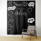 Celebrate your graduation in style with this fun, modern party backdrop featuring playful doodle elements. Black background.