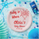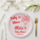 As you see this unique and elegant baby in bloom floral bouquet baby shower paper plates has a well designed template. With red hand drawn flowers and whimsical written hand written name and date in magenta red. All on pink background . Which you can customise easily by clocking on the personalise button.