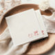 Quirky and whimsical wedding napkins featuring a hand-drawn illustration of cocktail glasses in a fun and playful style accompanied by the couple's initials in a casual, handwritten font that perfectly captures the excitement and joy of the occasion.