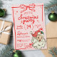 Hand Drawn Red Pink Bow Vintage Santa Christmas Invitation