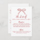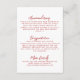 This wedding details enclosure card features a simple, minimalist design with a delicate hand-drawn bow at the top. The front includes a clean layout with a mix of handwritten script and a simple handwritten font, offering a sophisticated yet approachable feel. Styled in a timeless red and white palette reminiscent of Italian, French, and European aesthetics, this design adds a charming touch.