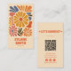 Hand-Drawn Retro Colourful QR Code Boho Bold Flora Business Card