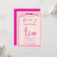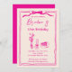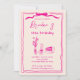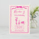 Hand drawn scribble sketch retro vintage pink ribbon adults birthday Invitation template instant digital download