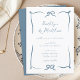 Hand Drawn Ribbon Doodle Dusty Blue Modern Wedding Invitation