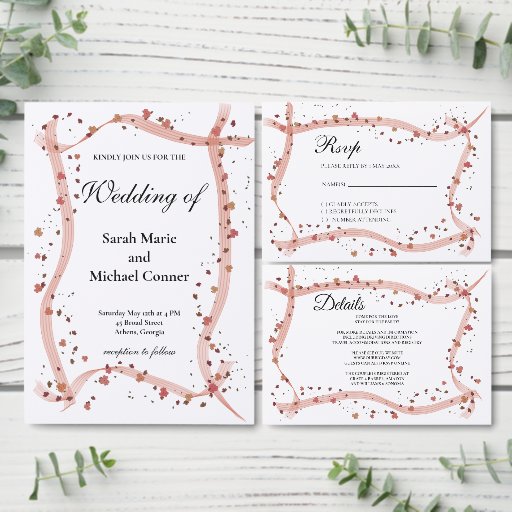 Hand drawn Ribbon and flowers Wedding SuiteDesigned by Phyllis Waugh