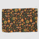 A decorative and cosy fall pattern! This cute design is hand drawn and digitally illustrated, featuring a charming medley of pumpkins, sunflowers, leaves, and mushrooms on a stylish black background. It perfectly captures a charming woodland harvest look with a vintage-inspired, rustic texture.