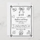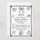 Hand drawn black and white scribble whimsical retro French style wedding Invitation. Invite your guests with this quirky and whimsical invitation. It features a hand-drawn illustration of several whimiscal doodles including hearts, a ring and a bow. The handwritten font and the frame with hearts at the corners add a delightful touch, perfectly reflecting the joy and excitement of your special day while inviting your guests in a unique and quirky manner.