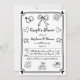 Hand drawn black and white scribble whimsical retro French style wedding couple's shower Invitation. This quirky design is brought to life with endearing, scribbled illustrations, including hearts, a wedding ring, and a bow. The handwritten typeface and a frame accented with hearts at each corner add to the overall charming aesthetic, capturing the excitement and happiness of your upcoming wedding shower.