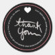 Hand Drawn Script Business Thank You Pink Black Classic Round Sticker