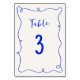 Celebrate in style with our quirky and fun wedding table number featuring a hand drawn squiggle frame and casual handwritten script in a fun colour scheme of cobalt blue on ecru.