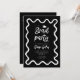 Funky graduation party invitation card featuring hand drawn squiggly and wavy frame. Black background.