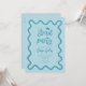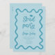 Funky graduation party invitation card featuring hand drawn squiggly and wavy frame. Blue background.