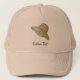 Yellow, hand drawn woman's summer hat with pink small bow ribbon.