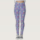 Sky blue leggings printed all over with a hand drawn pattern of red, blue and yellow striped beach huts