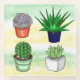 Hand drawn succulents, cactus and aloe vera plants with green and yellow marble background.