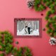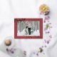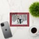The back features a rustic red and green tartan plaid pattern, adding a warm and cosy element to your holiday greetings. Available as a printed card or digital file, making it easy to mail out, share online, or print locally.