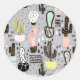 Hand Drawn Textured Cactus Pattern Classic Round Sticker