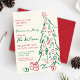 hand draw Christmas Tree Red Green Christmas Party invitation, whimsical vintage inspired Christmas charcuterie, cocktails, quirky hand drawn tree & gifts, handwritten