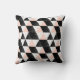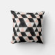 This abstract geometric features a pattern in black, white and pastel pink.