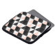 This abstract geometric features a pattern in black, white and pastel pink.