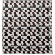 This abstract geometric features a pattern in black, white and pastel pink.