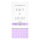 BUDGET Hand drawn typography lavender purple pattern wedding program. The bottom of the program showcases a white and lavender geometric pattern, complemented by a banner highlighting the wedding date. The couple's names are beautifully presented in a whimsical hand-drawn style typography, giving a unique and personal feel to the overall look of the program.