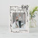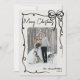 Send holiday cheer with this vertical Christmas card design. The front features a vertical photo in the centre, framed by a swirling ribbon-style doodle border. A cute hand-drawn coquette bow sits in the top right corner, while “Merry Christmas” appears in a handwritten script at the top left. The bottom right includes space for your family’s last name or individual names, along with the year. The background is an off-white or cream shade for a vintage or rustic vibe, with the doodle art and fonts in black for a simple retro look.