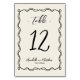 Cute Hand Drawn Quirky Whimsical Wedding Table Number. This table number card features a charming hand-drawn swirl and loop border, set against an ivory or off-white background for a soft vintage feel. The whimsical frame gently surrounds the table number, using a mix of script and handwritten-style fonts to create a stylish and personal design.