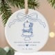 Celebrate your first Christmas as a married couple with our beautifully crafted "Our First Christmas Married" ornament. Featuring a charming hand-drawn ribbon bow and a heartwarming wedding cake, this keepsake gift is perfect for commemorating your special day. Hang it on your tree to cherish the memories of your love story, or gift it to newlyweds as a thoughtful reminder of their journey together. Make this holiday season unforgettable with a touch of romance and elegance.