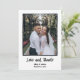 A hand written wedding thank you card with note