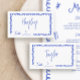 Hand Drawn Whimsical Fun Blue Wedding Table Flat Place Card