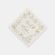 Personalised Hand-Drawn Quirky Wedding Napkins. This fun and playful wedding cocktail napkin features quirky doodle illustrations in soft tan against an ivory background, creating an elegant, muted look. The illustrations include a champagne tower, wedding cake, disco ball, hearts, wedding bells, rings, cameras, flowers, and more. The bride and groom’s names and wedding date are elegantly displayed beneath the whimsical artwork in a mix of handwritten script and simple fonts, all in coordinating tan tones, giving the napkin a stylish and personalised touch.