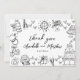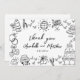 This playful and heartfelt thank you card features a charming design inspired by European sketches, perfect for couples who want a fun and unique way to express their gratitude. The front showcases hand-drawn illustrations in black and white—think champagne towers, disco balls, cameras, wedding bells, hearts, and more—surrounding the centre where "Thank You" appears in a handwritten-style font. Below, the couple's names and wedding date are displayed, making it a sweet and personal keepsake.