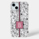 Hand Drawn White Floral Pattern and Pink Monogram Case-Mate iPhone Case