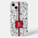 Hand Drawn White Floral Pattern and Red Monogram Case-Mate iPhone Case