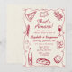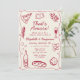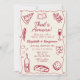 Whimsical and hand-drawn, this retro-style party design features a classic wine red colour, a playful wavy frame, and illustrations of Italian-themed cuisine. Paired with elegant hand-lettered fonts, this design is perfect for adding a touch of vintage flair to your event. Ideal for rehearsal dinners, couple’s showers, or bridal showers—especially those with a pizza or pasta party theme.