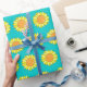 Hand Drawn Yellow Orange Aqua Sunflower Pattern Wrapping Paper