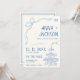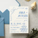 Hand Illustrated Vintage French Blue Wedding Invitation