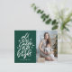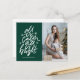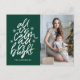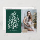 Elegant, modern holiday postcard featuring the phrase "All is calm, all is bright" in a white, hand-lettered script with starburst accents against a dark green background. Personalise the front of the hand-lettered holiday postcard by adding your name and favourite photo. The back of the holiday postcard displays your return address and custom message.