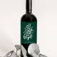 Elegant, modern holiday wine labels featuring the phrase "All is calm, all is bright" in a white, hand-lettered script with starburst accents against a green background. Personalise the holiday wine label by adding your name or custom text.