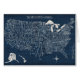 This watercolor print features a deep blue map of the United States of America | By Michael Mullan
