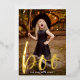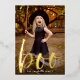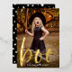 Modern Halloween card featuring your favorite photo with "boo" in a hand-lettered gold foil script. Personalize the gold foil Halloween card with your name in white lettering. The back of the Halloween photo card features a black and white star design.