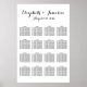 This simple yet elegant wedding seating chart features a hand lettered style of calligraphy that will compliment a wedding or event of any theme. You can't go wrong with this elegant, understated design. Customise the background colour to match any theme, or stick with classic white. Fully customisable with your guests names.