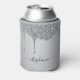 Hand Lettered Custom Name Silver Glitter Drips Can Cooler.