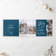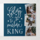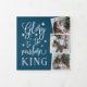 Add a total of six photos to this beautiful religious holiday photo card design in a unique trifold layout adorned with stars and featuring hand lettered typography. Front holds three square photos with "glory to the newborn king" in white hand lettered script typography on a blue background. Personalise the inside with a custom pre-printed message or "year in review" update letter.