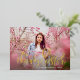Cute foil Easter card featuring your horizontal photo with "Happy Easter" displayed in a whimsical gold foil script overlay. Personalise the gold foil Easter card with your name. The photo Easter card reverses to display a solid pink background.