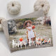 Cute and modern Halloween photo card featuring "Happy Halloween" in a white, hand-lettered script font overlay. Personalize the Halloween card by adding your favorite photo and custom text. The reverse side features a customizable orange and white minimal pattern.