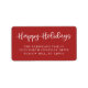 Hand lettered Happy Holidays script, address labels. Features, white lettering on festive red background.