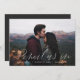 This save the date features hand lettered "pencil us in" over a horizontal photo, perfect for photos that have a lot of white space or sky at the top. This template also has a backer design for an optional additional photo and details like your wedding website. The charcoal colour on the back can be changed to any colour you'd like in the customisation window!