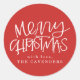 Top of your mailing or party with these festive stickers featuring a whimsical "Merry Christmas" and personalise with your own name against a Christmas-y red background!